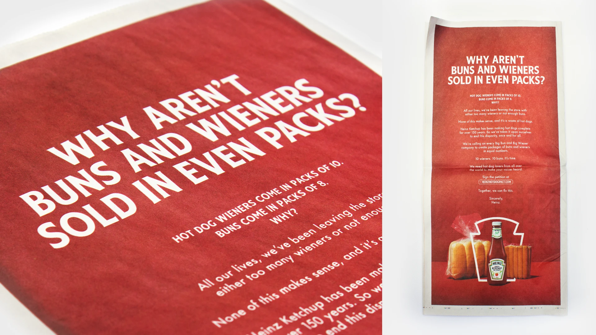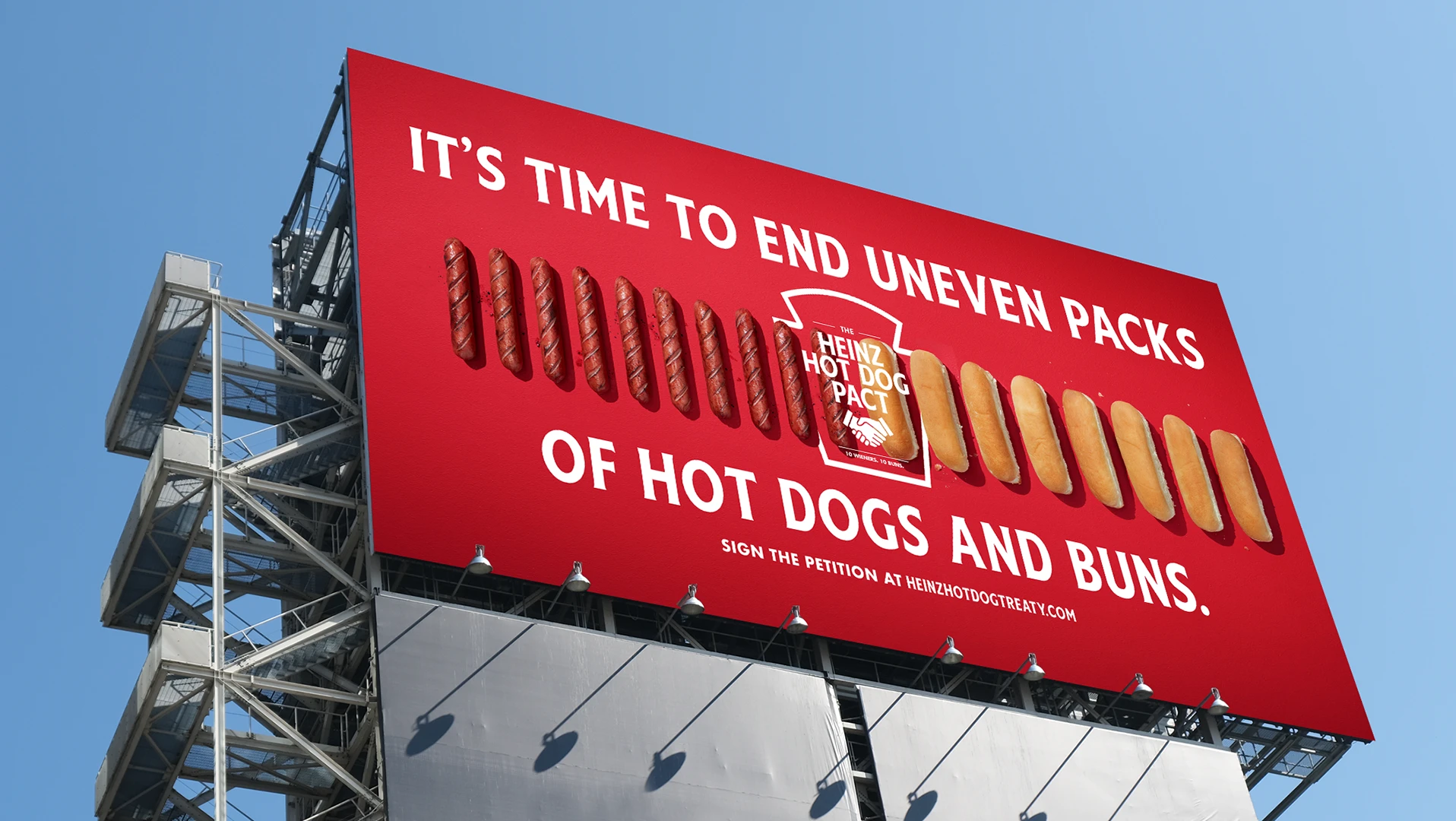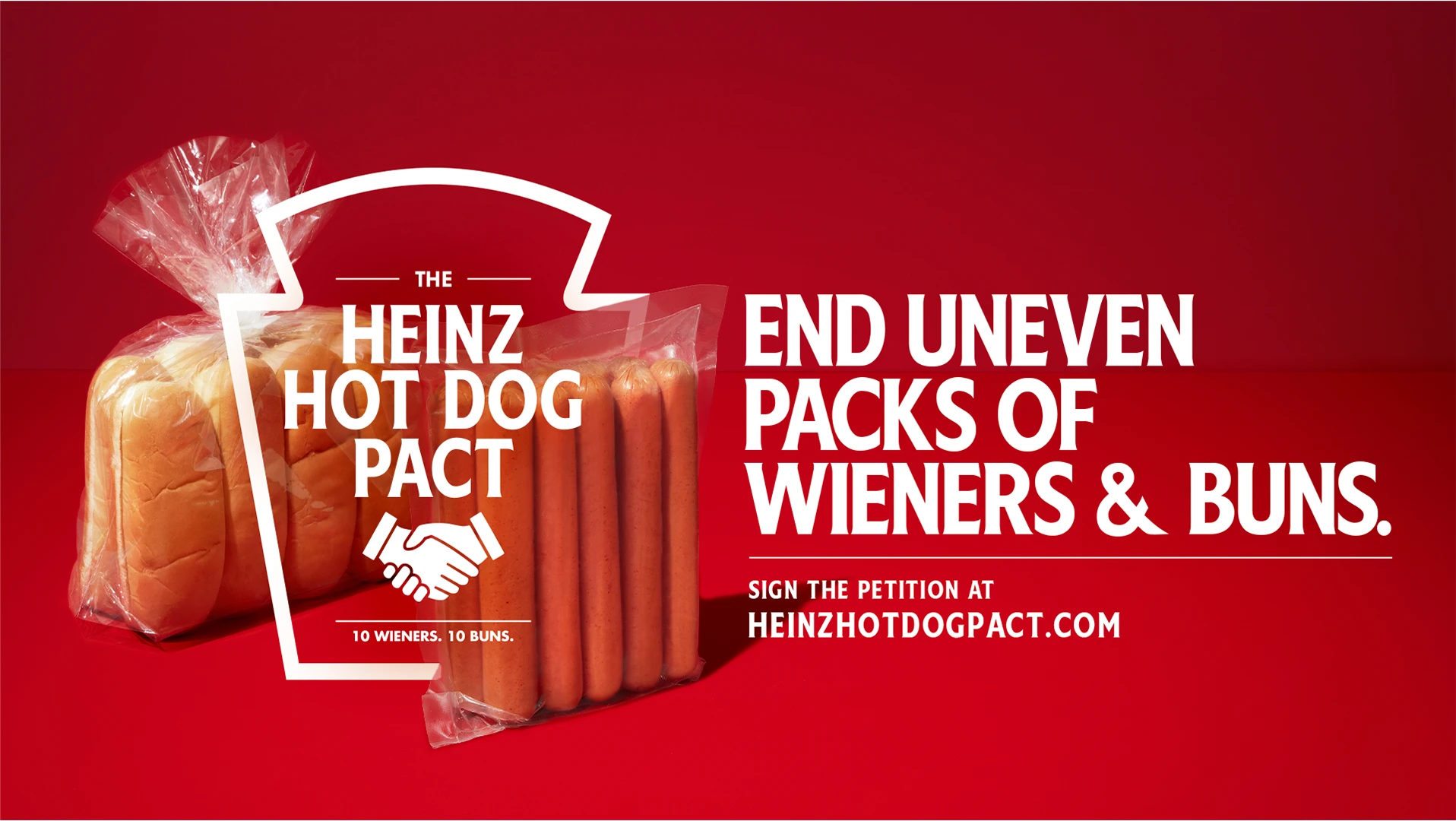 Winner of Cannes Lions, The One Show, and many more. For decades, people have been asking why hot dog buns come in packs of 8 when wieners come in packs of 10. As the condiment that’s been uniting hot dogs together for over 150 years, we decided enough is enough and created The Heinz Hot Dog Pact. A rally cry for hot dog and bun companies to finally make even packages. The cause garnered thousands of signatures on a change.org petition, and lobbied bun and wiener companies to end this packaging mismatch once and for all. Following the massive support from hot dog lovers all over the world, Wonder officially joined the Heinz Hot Dog Pact. Starting June 23rd, they are releasing the first ever 10-pack. 10 wieners. 10 buns. Finally.
